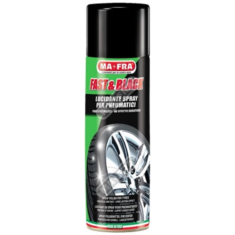 Fast & Black è il lucidante spray antistatico, pratico e veloce che protegge e ravviva il colore originale di ogni tipo di pneumatico, preservandolo da screpolature causate da agenti atmosferici e chimici. L'effetto lucidante di Fast & Black è duraturo nel tempo, in grado di resistere a ben 3 lavaggi. Fast & Black non unge, non appiccica e rilascia un gradevole profumo, consentendone l'utilizzo anche per rinnovare tappetini in gomma.